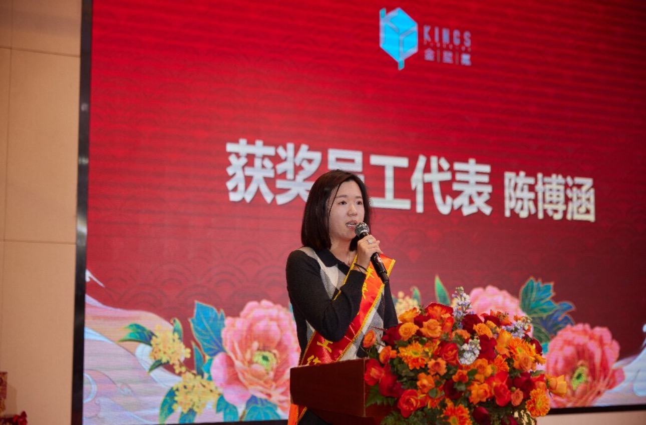 公共事務(wù)部陳博涵作為先進(jìn)個(gè)人代表發(fā)言,深感榮幸與感恩,坦言這份榮譽(yù)屬于全體金石氟業(yè)人?;仡欉^(guò)往,她感謝領(lǐng)導(dǎo)鄧琪煒的悉心指導(dǎo),也難忘與團(tuán)隊(duì)并肩作戰(zhàn),見(jiàn)證園區(qū)從荒蕪到項(xiàng)目落地投產(chǎn)的蛻變,深刻體會(huì)到團(tuán)隊(duì)的強(qiáng)大力量。她表示會(huì)將榮譽(yù)化為動(dòng)力,精進(jìn)業(yè)務(wù)、腳踏實(shí)地,還愿與同事攜手奮進(jìn),共譜公司發(fā)展新篇。